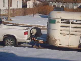 Bob got Rose and Ruby all ready to go take hay over to the cows. He hooks them up on the hayrack and the horses pull it over to the stalks so we can drop of some hay. Actually I think it's cane - same difference, right?!